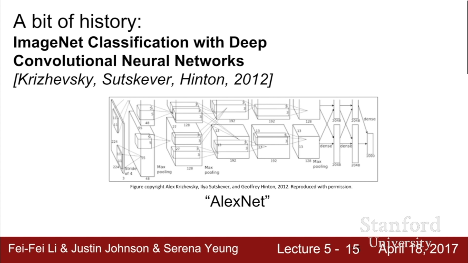 이후 2012년에 ImageNet Classification에서 우리가 현재 사용하는 CNN의 기반 모델의 시초가 되는 AlexNet이 처음으로 소개되었고, 이 구조는 ImageNet data set과 같은 방대한 양의 Image data들과 병렬 컴퓨팅이 가능한 고성능 GPU가 개발됨에 따라서 더 좋은 성능을 가지게 되었다.