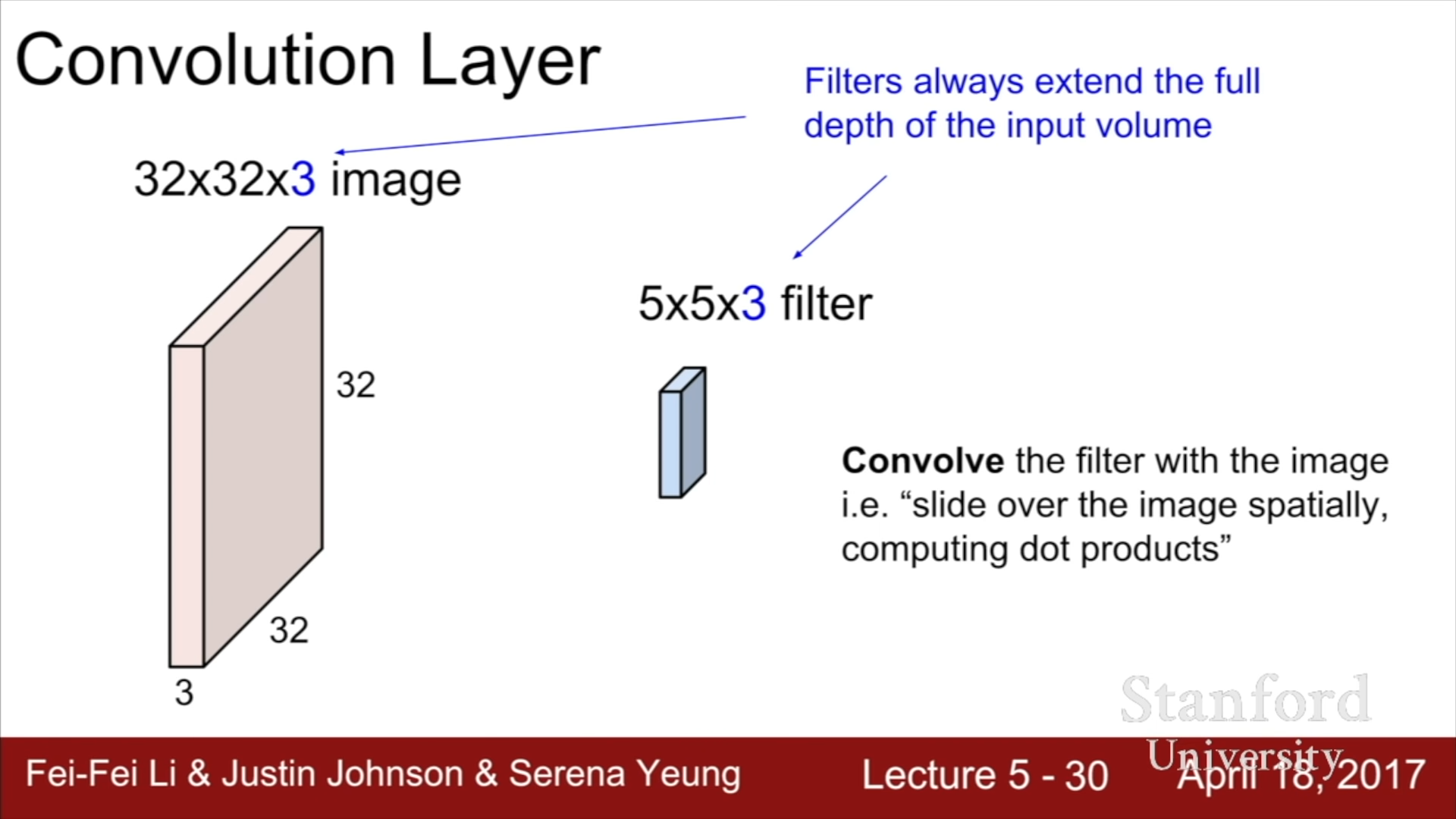 연산을 위해서 Filter가 필요한데, 이 Filter의 Depth(깊이)는 이전 Layer에 입력된 정보의 Depth와 일치해야 한다.