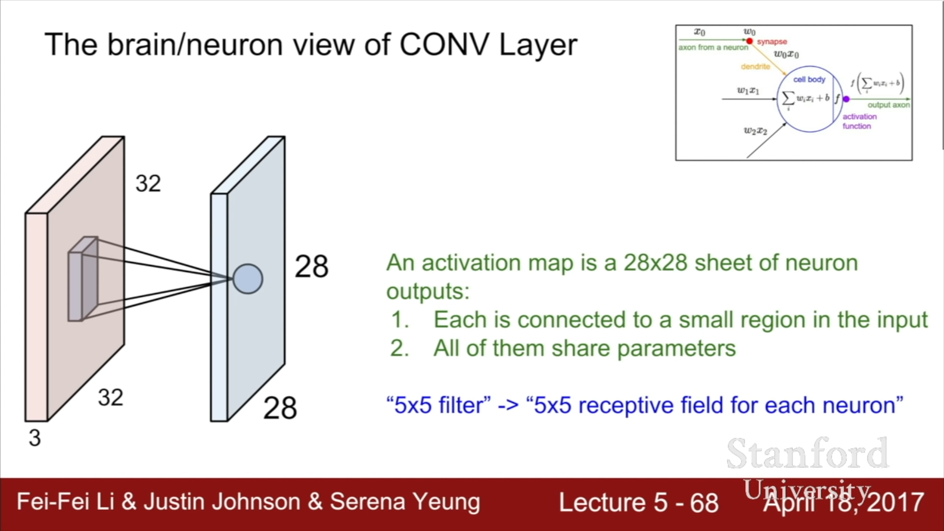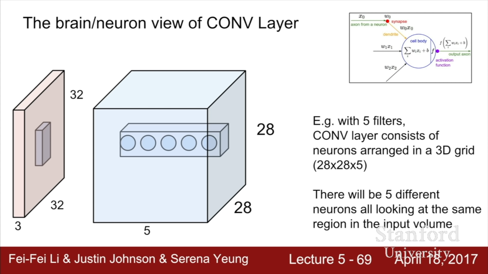 - Brain/Neuron view of CONV Layer
