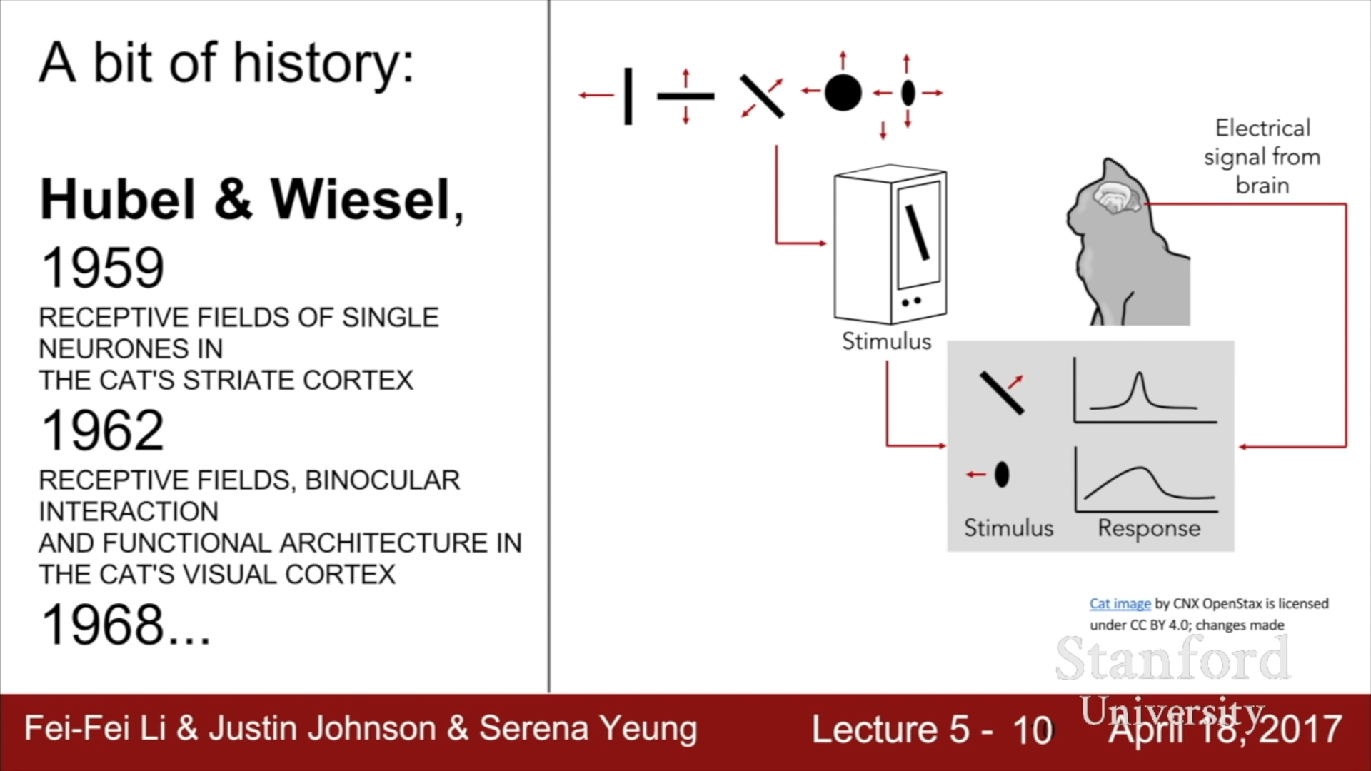 이전 강의에서 다루었던 Hubel과 Wiesel의 고양이를 활용한 Visual Cortex의 작동 방식에 대한 연구를 살펴보면, Visual neurons들이 위계적인 계층구조를 이루고 있다는 점이 밝혀졌다.