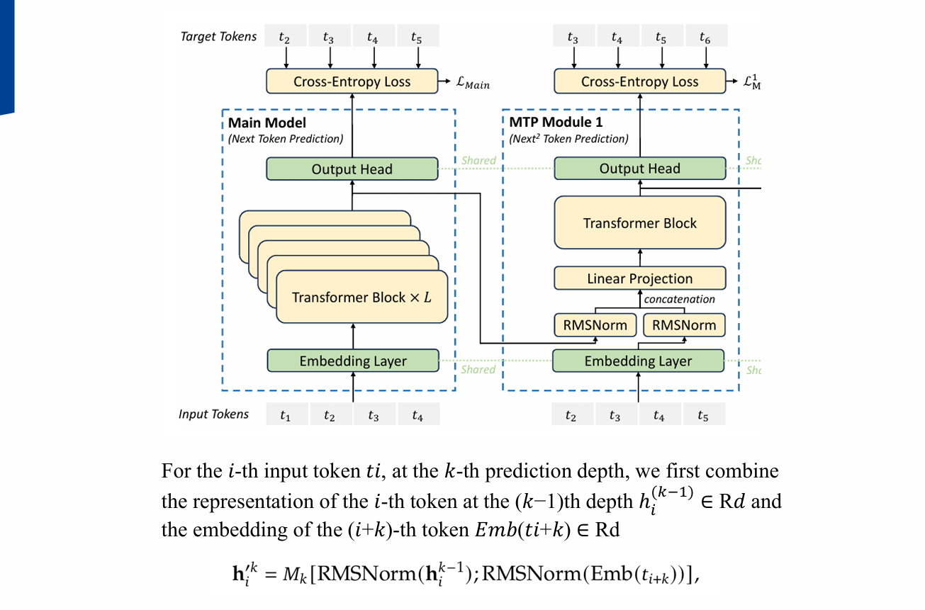 | MTP | 다중 토큰 예측 | 학습 효율 상승, 추론 속도 유지 |