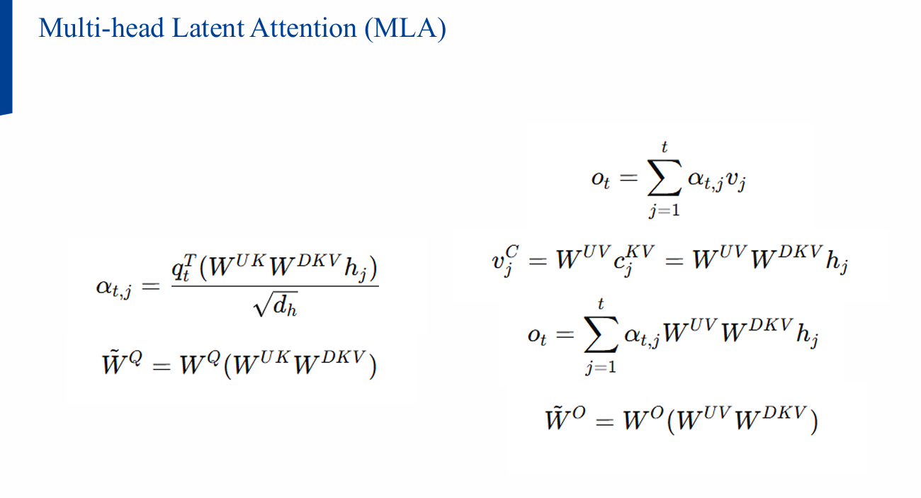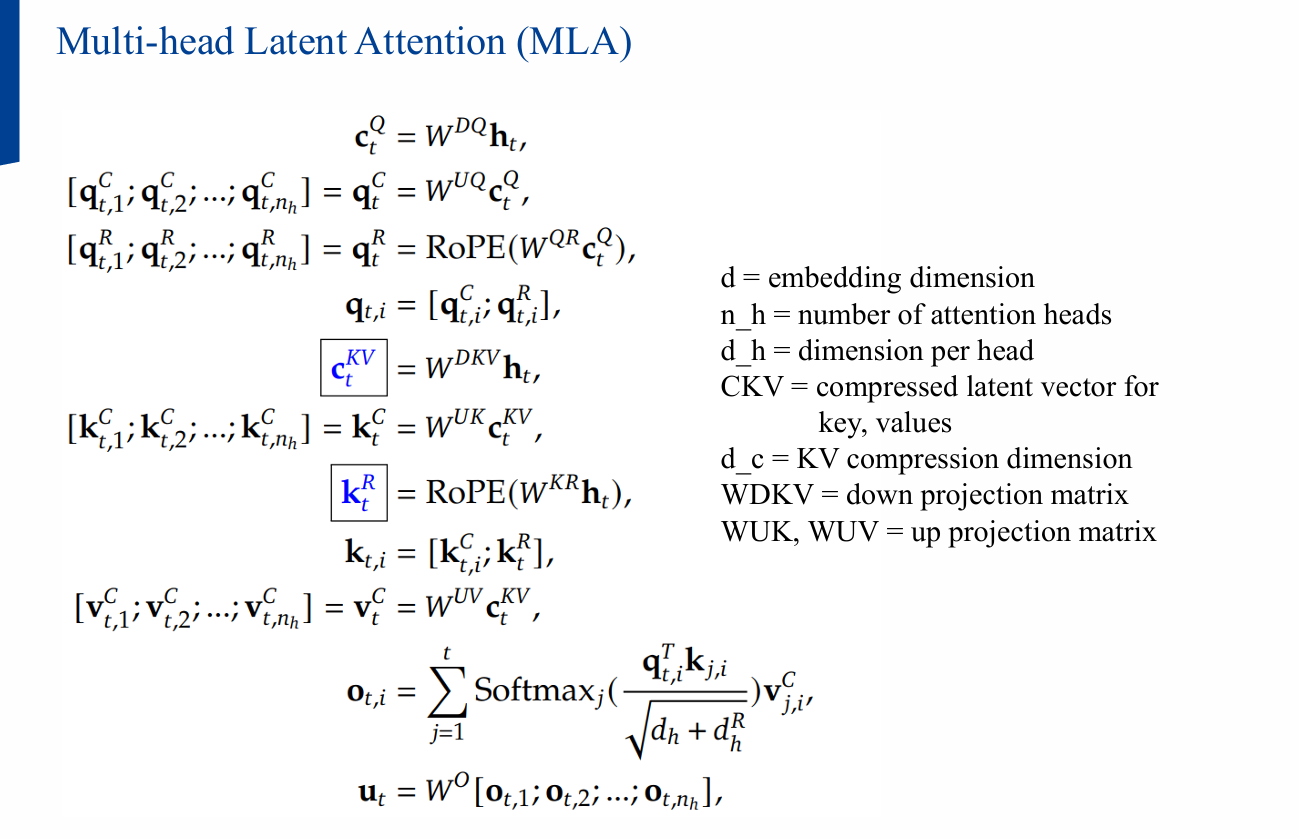 WDKV: Down projection (Key/Value 압축)WUK,WUV: Up projection (복원)