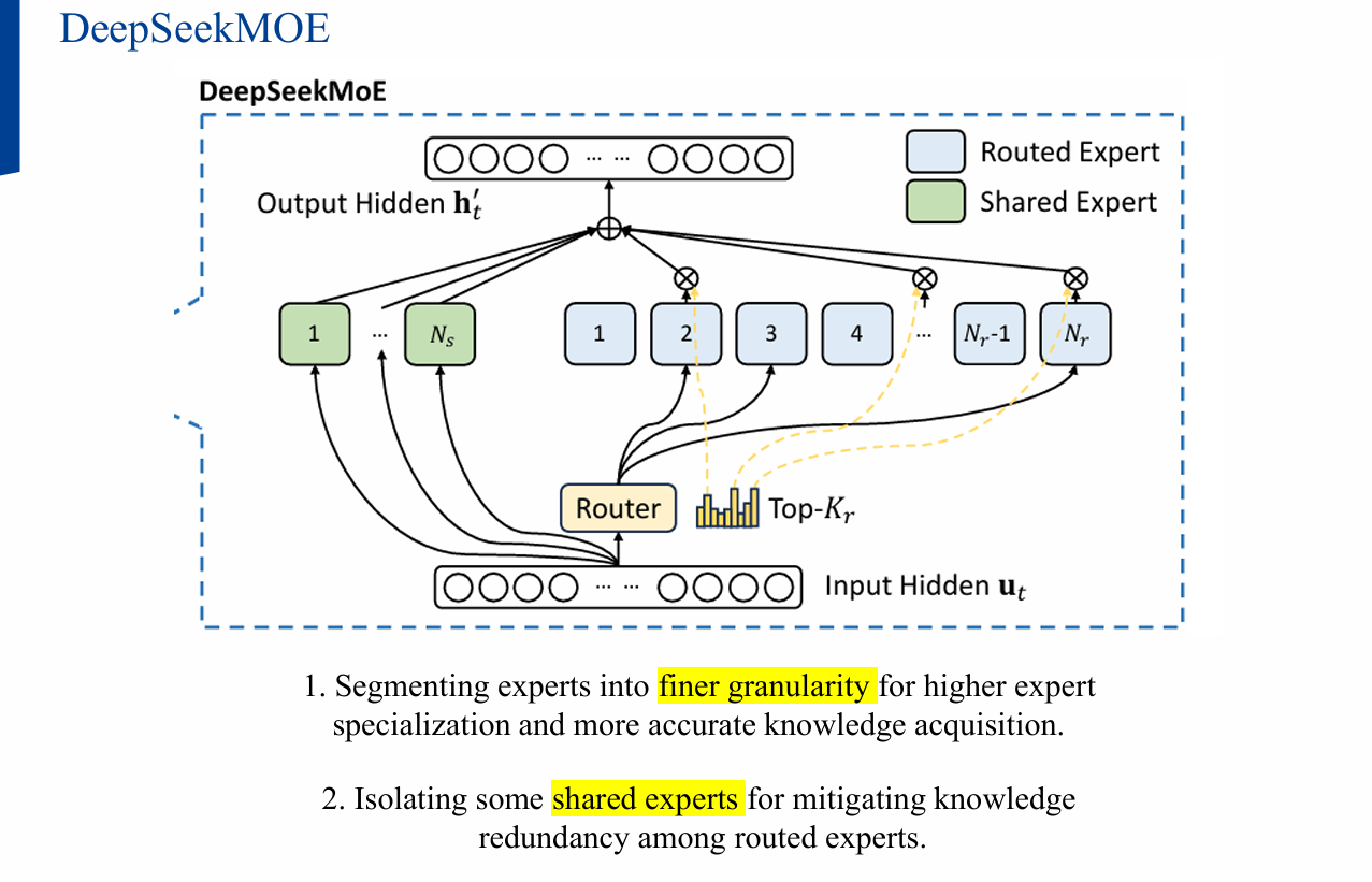 - 공유 전문가(Shared Experts) → 전문가 간 지식 중복 완화