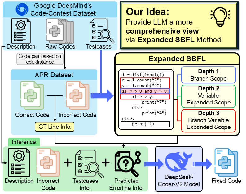 이번 프로젝트 “Expanded SBFL 기반 LLM 자동 프로그램 수정” 은 Python 논리 오류를 더 정밀하게 찾아내어 Large Language Model(LLM)의 자동 프로그램 수정(Auto Program Repair, APR) 성능을 높이는 것을 목표로 했습니다.