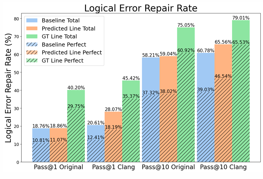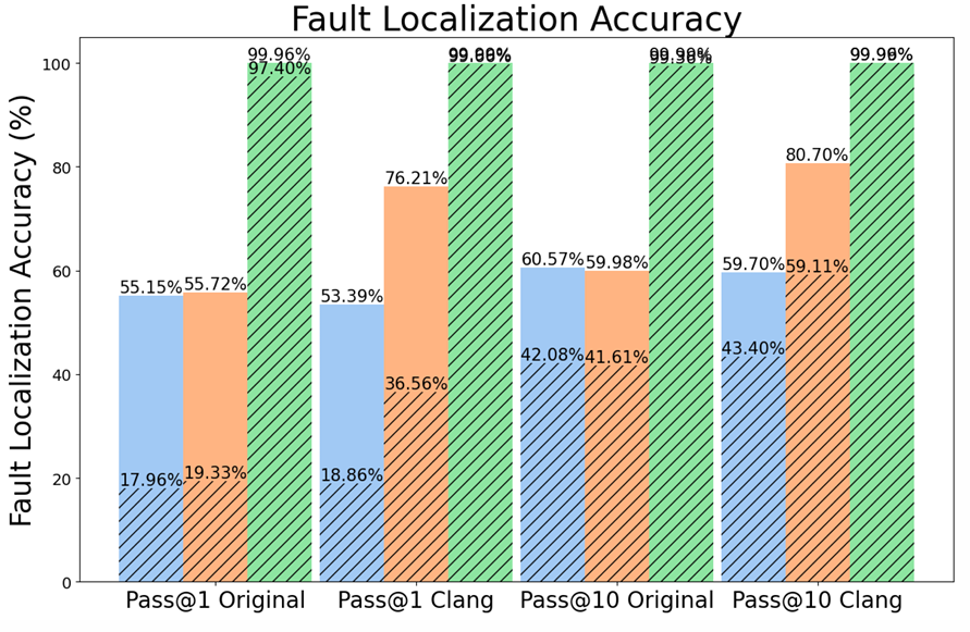 - Clang-format 적용만으로도 오류 위치 추정 및 수정 성능 향상