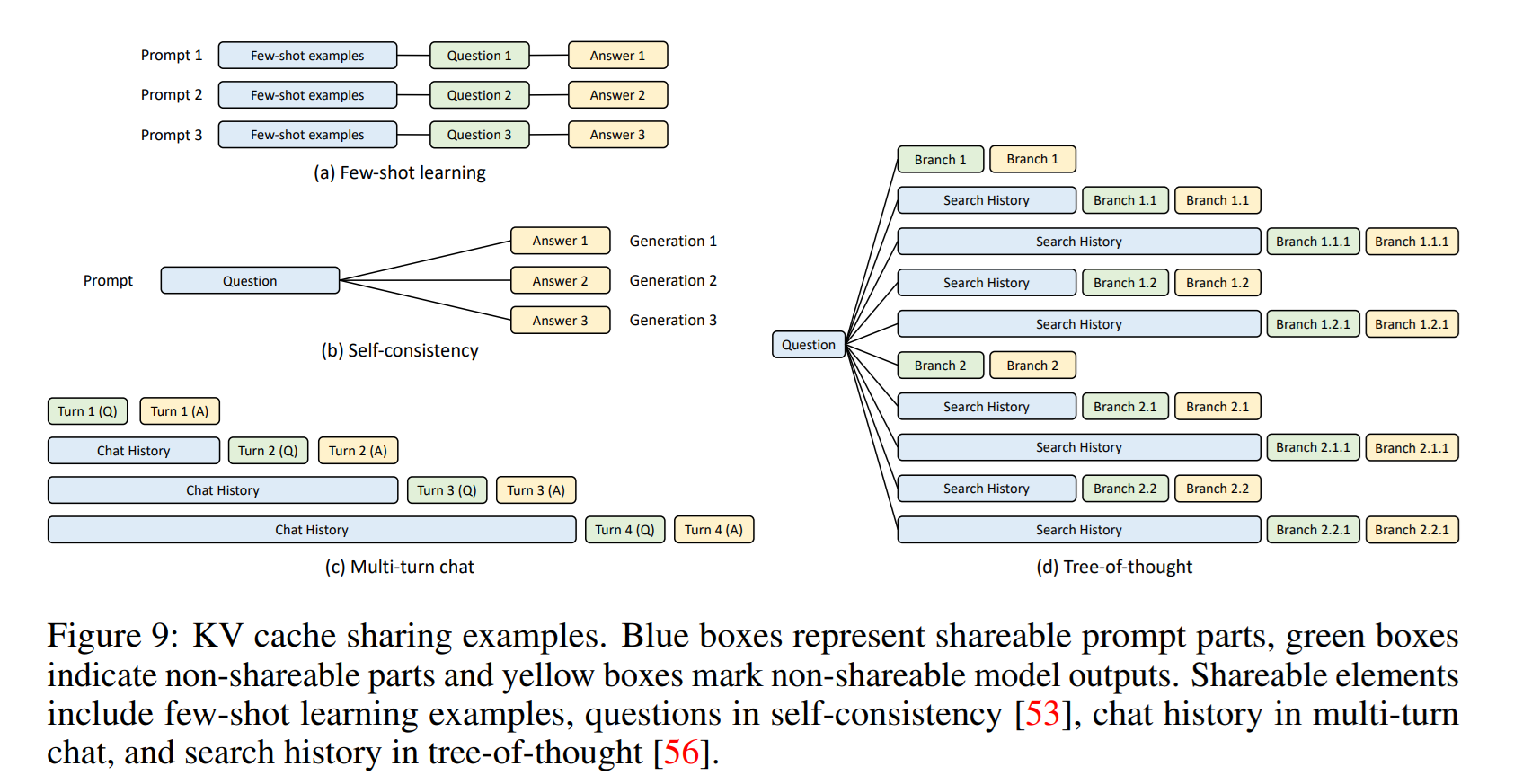 SGLang program은 다수의 generative call을 묶거나, 병렬 복사본을 생성하는 경우가 많다. 이 경우가 아니더라도 다른 프로그램들 또한 종종 공통된 prompt를 공유하는 경우가 많다. 이는 당연히 KV Cache처리와 관련된 논의를 유발하는데, 공통된 KV 값을 계속해서 연산한다면 의미없이 throughput과 latency에 악영향을 끼치는 것이 되어버리기 때문이다.