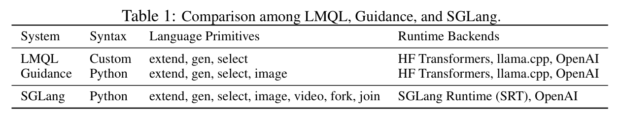 따라서 저자들은 front-end 단에서는 LM Program의 Programming을 단순화하고, runtime단에서는 실행을 가속화하는 방향으로 이 문제를 해결하려고 한다.